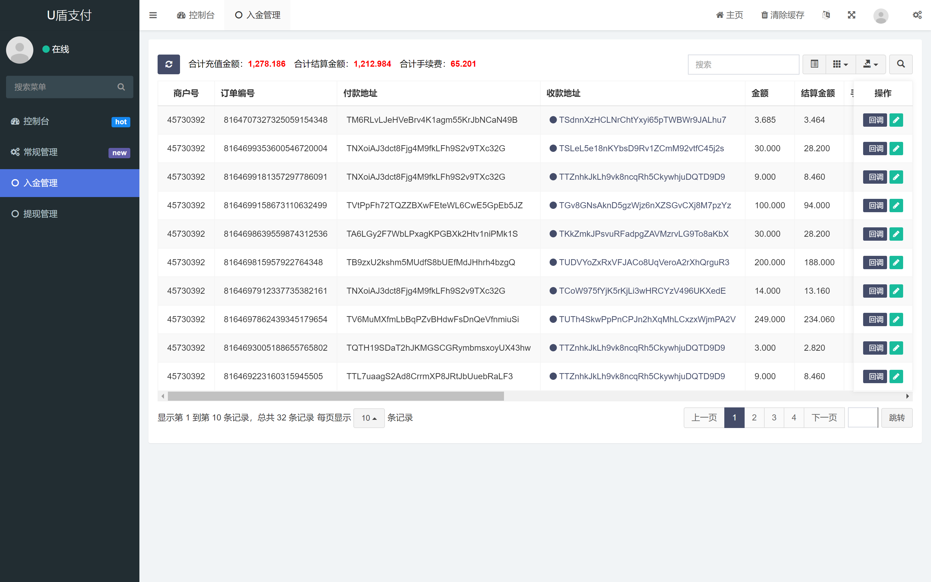 U盾支付是区块链数字资产支付平台,为数字资产平台量身定制的加密资产非托管去中心化管理解决方案,业务平台绑定自己私有结算地址,实时将业务平台用户充值的数字资产结算到私有钱包地址,并回调给业务平台系统。业务平台用户提币,也可通过U盾支付平台进行自动放币,并实时回调给业务平台系统。平台还提供丰富的API接口,比如充值、 提现等。公钥衍生技术,私钥永不触网,阻止黑客入侵,防内鬼盗币。